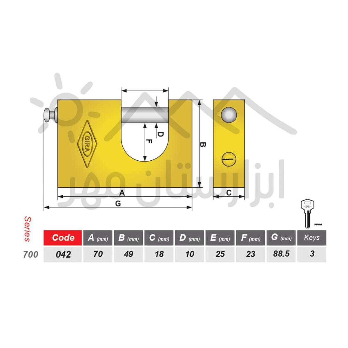 قفل کتابی گیرا 700 پاترول کلید کامپیوتری کد 042
