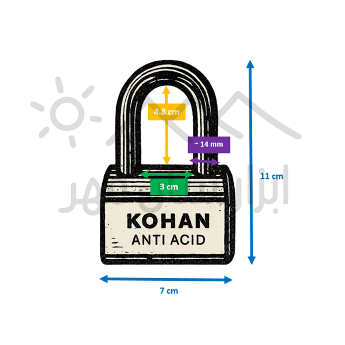 قفل آویز فولادی کهن دارای بدنه ای یکپارچه و مقاوم می باشد . بدنه این قفل از فولاد و سخت کاری شده است که دارای مقاوم بیشتر در برابر ضربه و برش و اسیدهای مخرب می باشد. دارای استاندارد ابعاد و اندازه برای دهانه ی قفل است . دارای چهار کلید هیدرودیسکی با امنیت بالا می باشد .استفاده از سیلندر بدون ساچمه و فنر سبب مقاوم شدن در برابر اسیدهای مخرب می شود.دارای سیلندر و کلیدهای برنجی می باشد.
