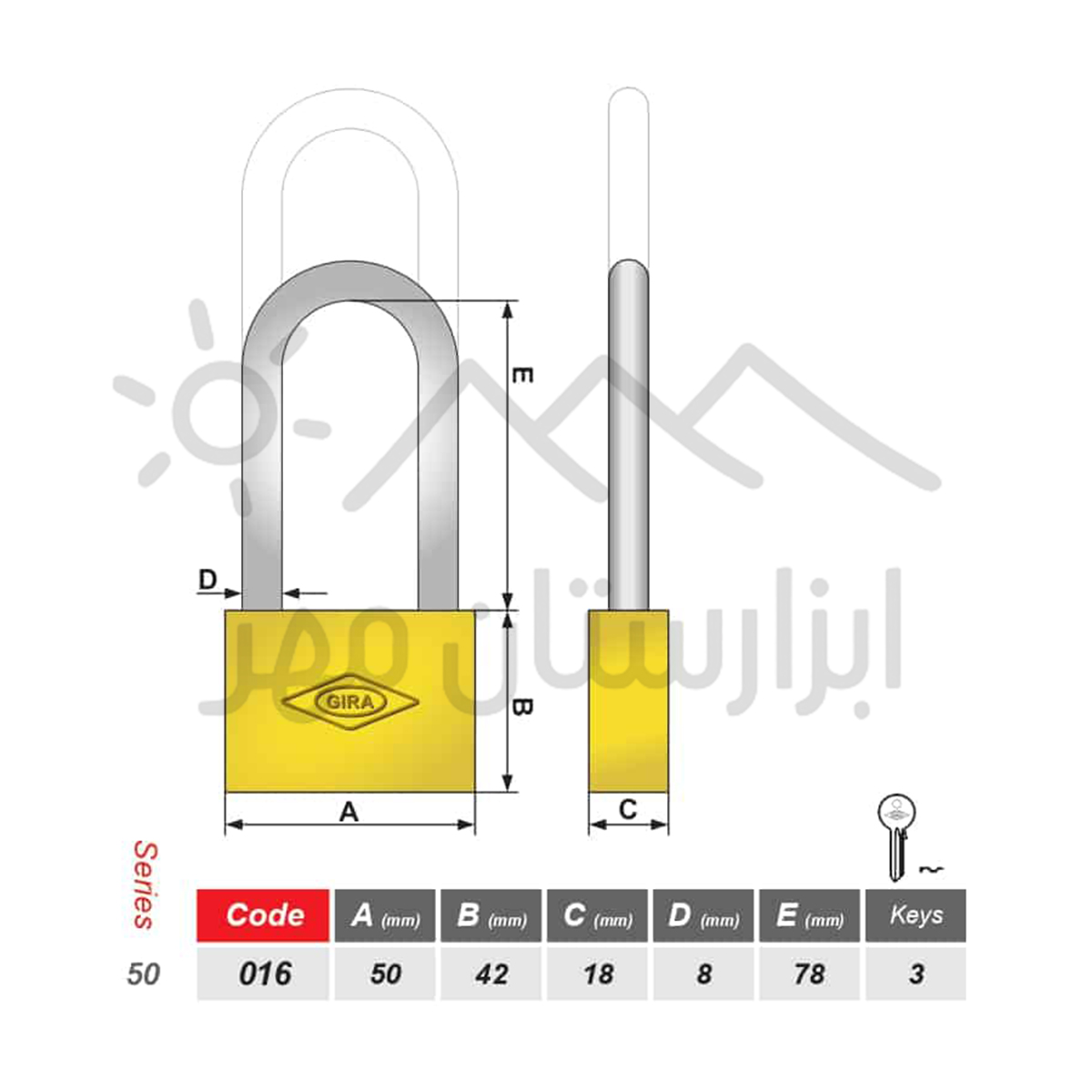 قفل آویز گیرا 50 تخت دسته بلند کد 016