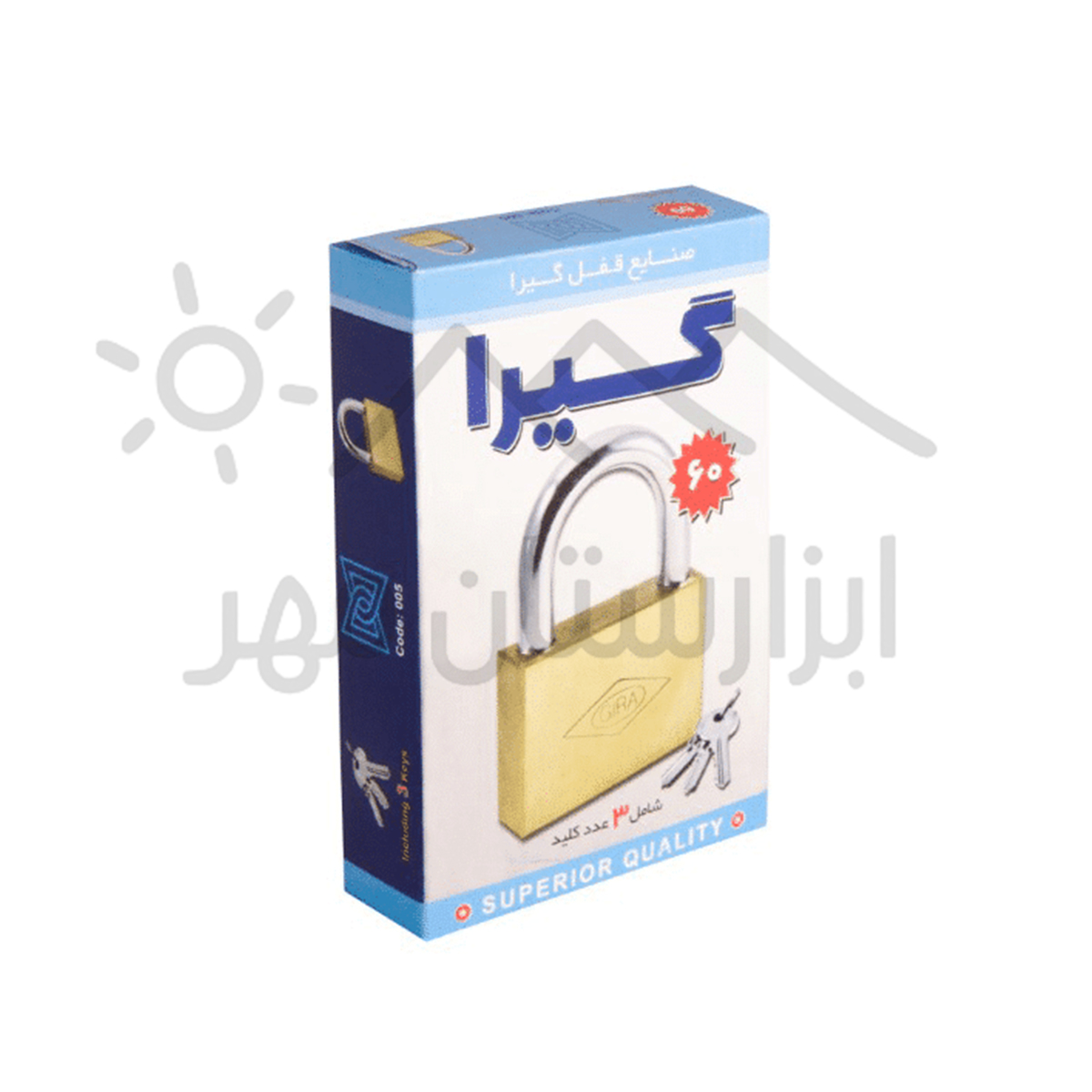 قفل آویز گیرا 60 تخت کد 005 یکی از قفلهایی است که 3 کلید آبکاری شده دارد. این قفل با تولید توسط برند گیرا دارای دوام و استقامت بالایی بوده که میتوانید با استفاده آن، به محیط امنیت بالایی ببخشید. این محصول با مواد باکیفیت و مرغوبی طراحی و تولید شده که به دلیل کاربرد خانگی خود، مصرف بسزایی در عصر امروزی دارد. قفل آویز 60 تخت کد 005 جزو محصولات امنیتی با استقامت بالا به حساب میآید که معمولا برای مصارف خانگی قابلاستفاده است. بدنه برنجی آن دارای مقاومت بالایی در برابر شرایط مختلف بوده که میتواند زمینه کارکرد اصولی قفل را فراهم کند. این قفل دارای 3 کلید آبکاری شده بوده که مغزی آن به صورت زبانهای تولید شده است. قفل آویز کلید معمولی سایز 60 با برخورداری از فنر فولادی مقاوم، امکان پایداری در هر شرایطی را دارد که میتوانید هر محیطی را با استفاده از این قفل ایمن سازید.