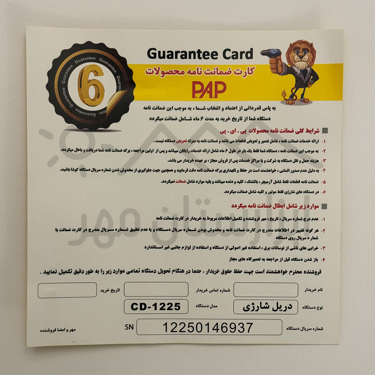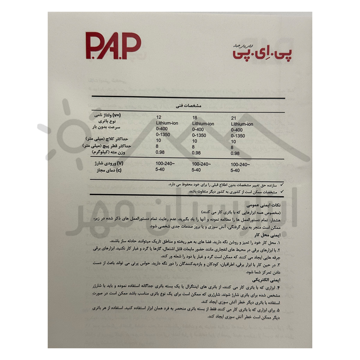 دریل شارژی ۱۲ ولت PAP (پی ای پی) مدل CD-1225
