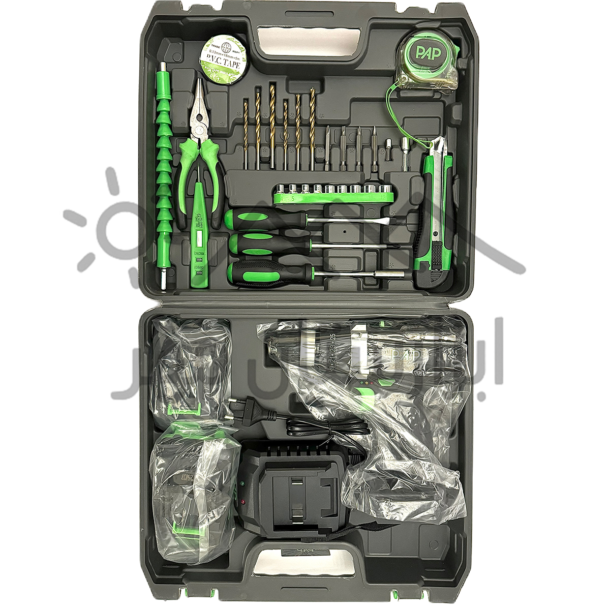 - دریل شارژی چکشی همراه با لوازم جانبی کامل