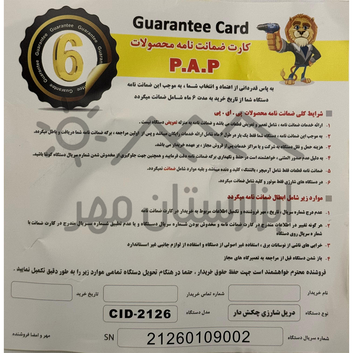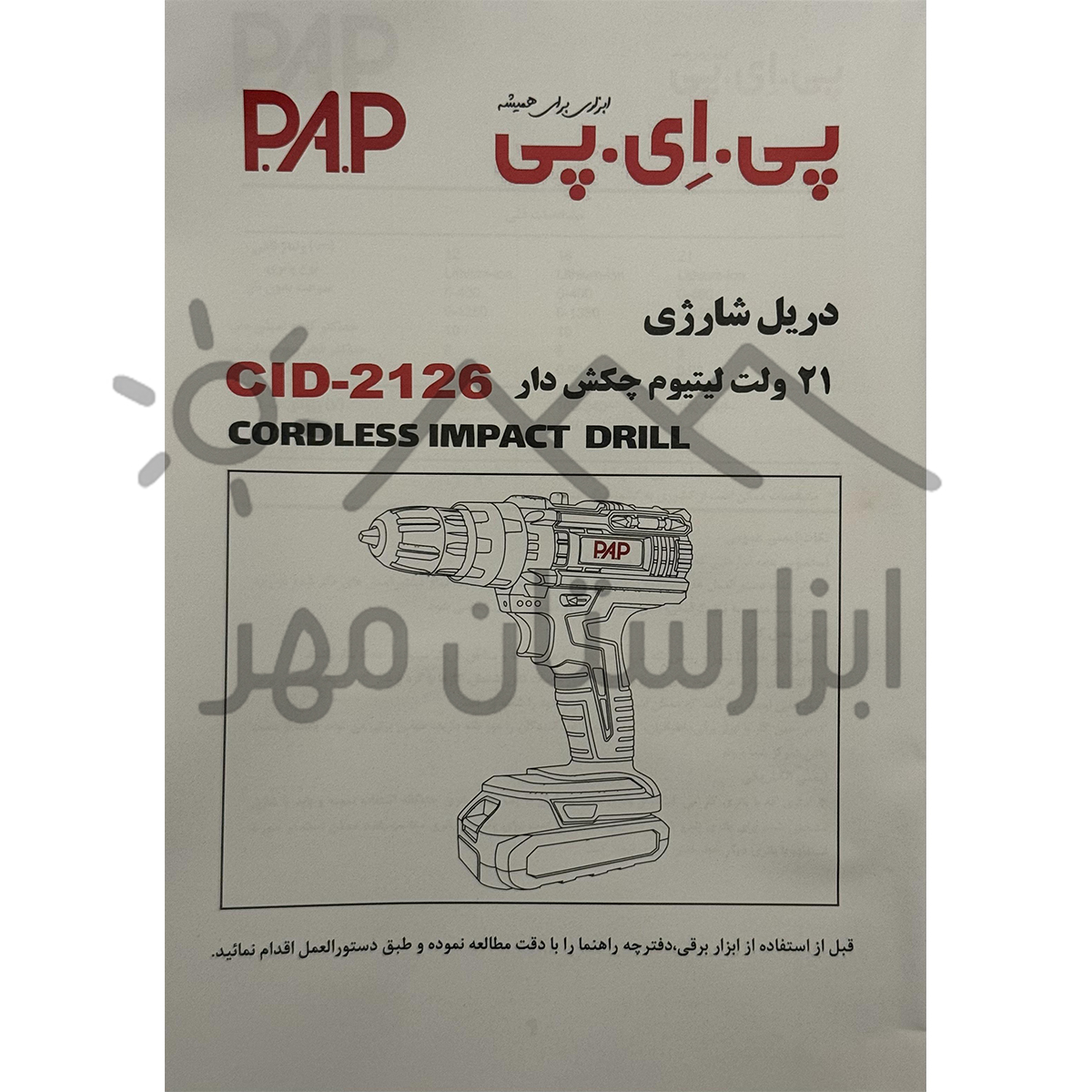 دریل شارژی چکش دار PAP (پی ای پی) مدل CID-2126