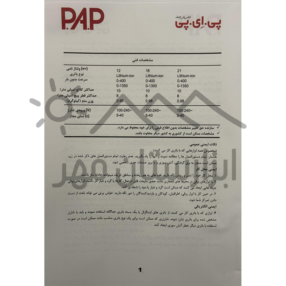 - محصولات برقی و شارژی برند پی ای پی PAP