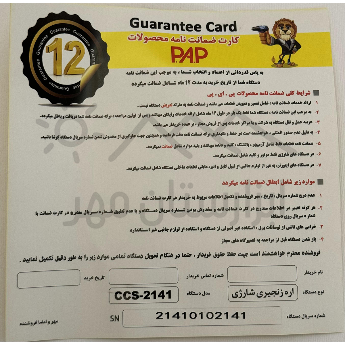 - دارای ۱۲ ماه گارانتی