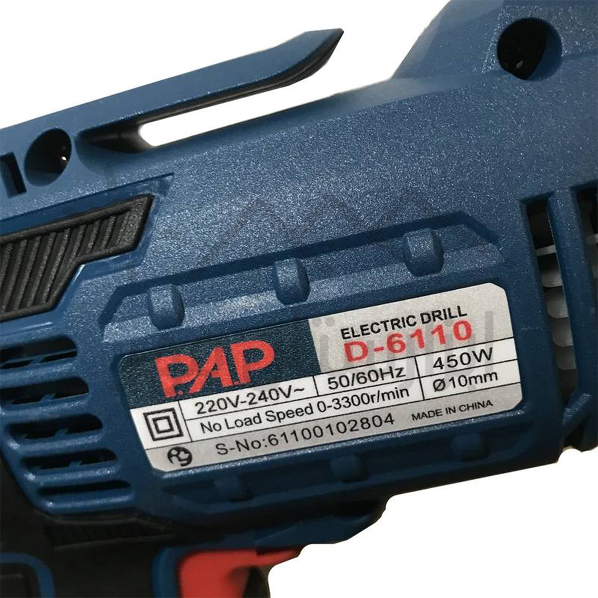 دریل 10 پی ای پی 450 وات مدل D-6110 را میتوان دریل خانگی ، کارگاهی و حتی صنعتی نام برد ! مجهز بودن به موتور 450 وات واقعی و قطعات داخلی با کیفیت صنعتی دلایل مهمی برای اعتماد کردن به این محصول میباشد.