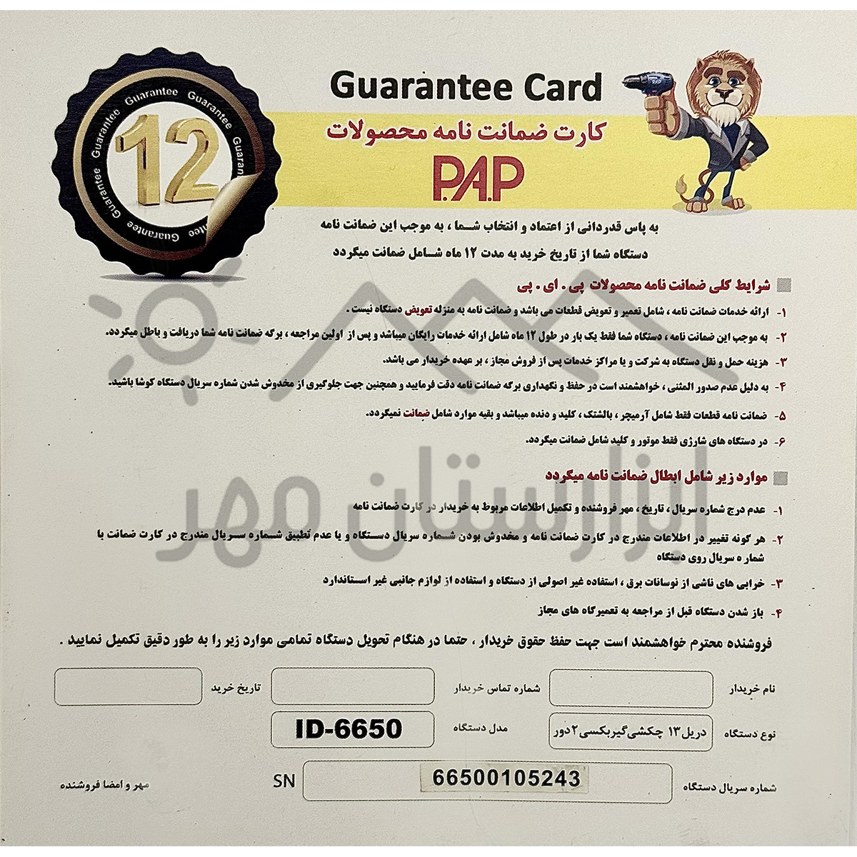دریل ۱۳ چکشی گیربکسی ۲ دور PAP (پی ای پی) ID-6650